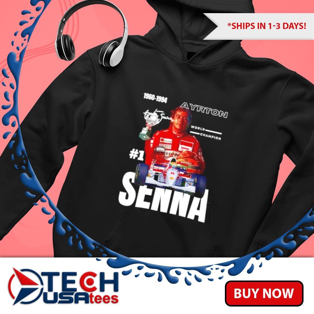 Buy this shirt: https://techteesusa.com/product/ayrton-senna-number-1-1960-1994-f1-world-champion-racing-signature-shirt/